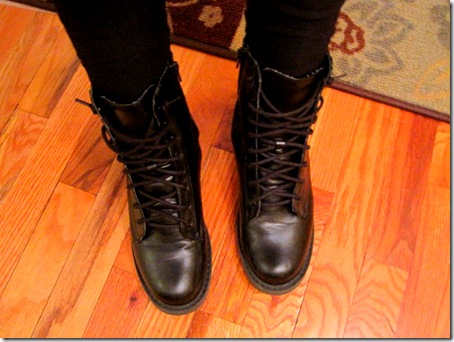 Cute combat boots! Back in the early 00’s, I had these brown lace-up boots with little blinking lights on them that lit up when you walked. Oh yeah. I was cool.