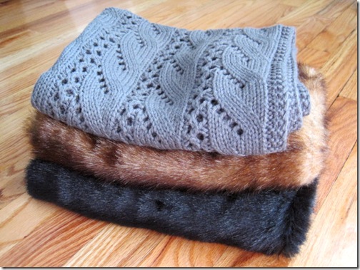 The faux fur neck warmer styles (seen below in brown and black), came in grey as well.