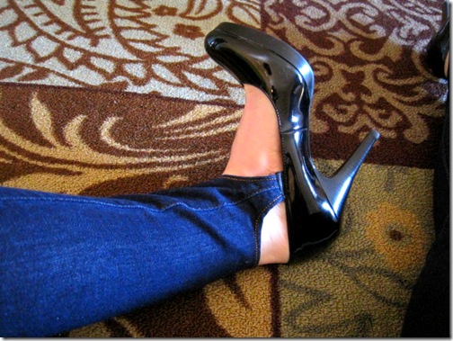 I walked around in my new pumps and jeans to break them in. Um….make that jeggings. With stirrups. Don’t hate.