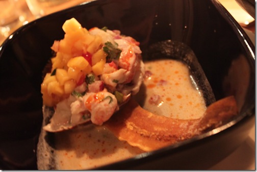 For my entree I went with the Lobster Ceviche - habanero infused coconut and citrus marinade, mango pico de gallo, red chile oil.