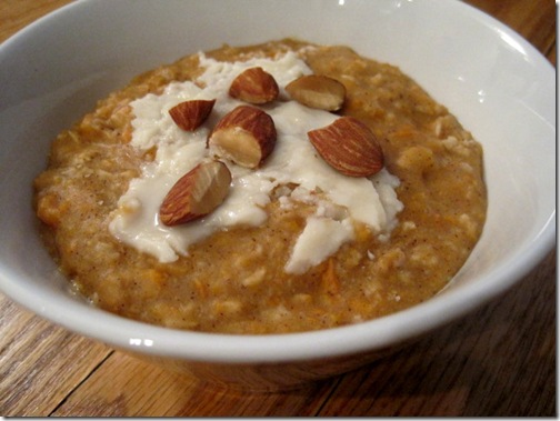 Breakfast this morning was a bowl I haven’t had since summertime…or since the last time I made it, for that matter. Sweet Potato Pie Oatmeal.