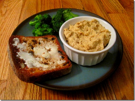 Broccoli, cinnamon raisin bread with coconut butter, and peanut butter hummus. Not a typical dinner, but an outstanding one.