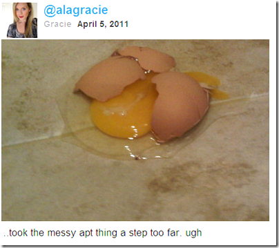and after reading this I dropped an egg :o) except it wasn’t on tile…wa wa wa