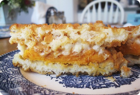 I need that sandwich in my mouth right now. WAFFLE lovin right there. Waffles with peanut butter is good. Waffles with peanut butter and banana is great. Waffles with peanut butter, bananas and SWEET potatoes is a whole new kinda food high.