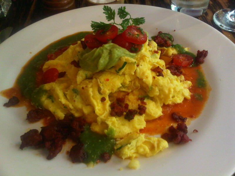 There were a ton of great menu options, but I went with the Basque Scramble – pepperonata, creamy polenta, salsa verde, avocado puree, chorizo.