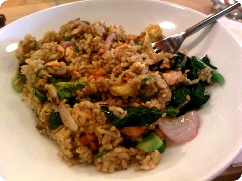 For the second course I went with the Salmon Fried Rice - stir-fried grilled salmon, brown rice, green pea, taro root, scallion.
