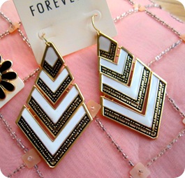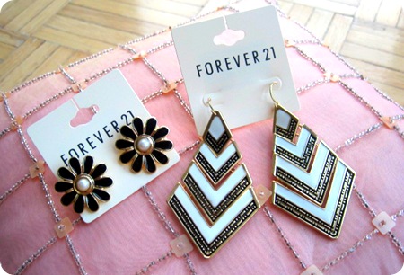 I love Forever 21 jewelery! They have such great finds! I have this one favorite bracelet that has miraculously lasted a few years that everyone always compliments me on not knowing it cost me like 5 bucks! The earrings are cute! I love black and white!