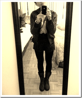 Cute! I love the shorts/tights combo. When I go out I usually wear a black high-waisted skirt and a tank top. Unless it’s during Canada’s deep freeze months, in which case it’s jeans all the way! 😛