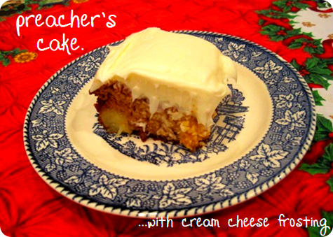 This is one of my favorite cake recipes. I couldn’t tell you what a preacher has to do with it, but I can say that this has become a go-to dessert in my family. It’s simple, delicious, and even freezes well.