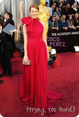 I think that dress looks awful on Emma Stone which makes me sad because in my opinion she is the CUTEST girl!