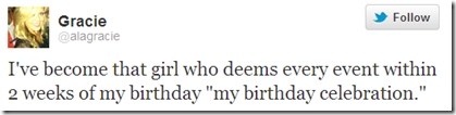 Any other week-long birthday celebrators out there? What’s your favorite way to celebrate your birthday?