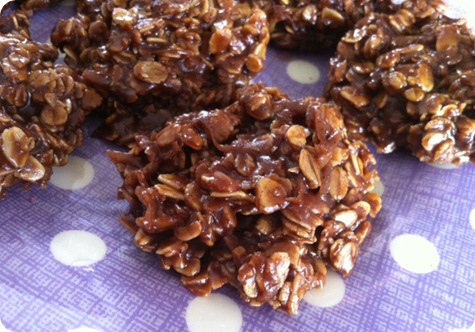 directions: Boil sugar, butter, soy milk, and cocoa for 1 minute. Add peanut butter, vanilla, oats, and coconut. Mix well. Remove from heat and drop onto wax paper by teaspoons. Cool and enjoy.