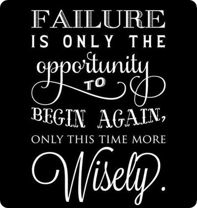 No really - think about the last failure you had in life. Did your world come crashing down around you? Even if it did (it has for me), chances are you’ve moved on, gotten past it, and have become stronger and wiser because of it. So the next time you find yourself not taking a certain chance or being crippled by the fear of failure, remember that you’ve overcome failure before…and you will again.