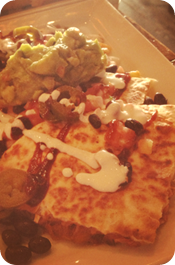That would be cheese grits, buffalo shrimp, pulled pork quesadillas, and bacon mac ’n cheese spring rolls from Southern Hospitality. Uh, yeah.