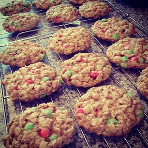 Those would be Quaker Vanishing Oatmeal Cookies, with mini M&Ms instead of raisins.