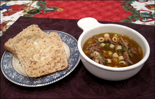 Thankfully there was a delicious and comforting meal of homemade beef soup simmering away in the crock pot, and it didn’t cost me a single dime. HIT.