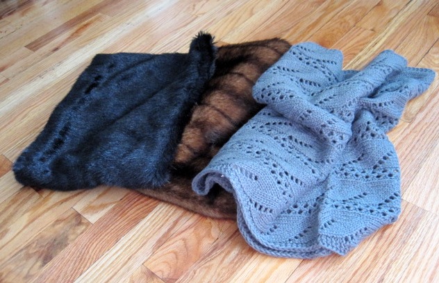 The faux fur neck warmer styles (seen below in brown and black), came in grey as well.