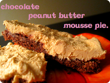 Chocolate Peanut Butter Mousse Pie. If the name isn’t enough to get your mouth watering, just wait until you try it! I’m not usually very confident when it comes to my own recipe creations, but this one definitely falls under the “pats self on back” category.