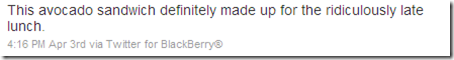 First off, that sandwich = perfect. I loooove avocado/sprout combos!