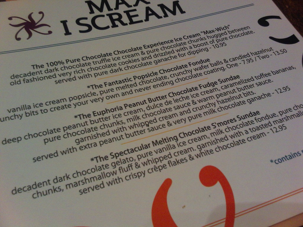I didn’t realize that Max Brenner actually had a menu full of “real” food as well, which some of my friends ordered. It all looked really great! Me, though? I think you know which direction I took.