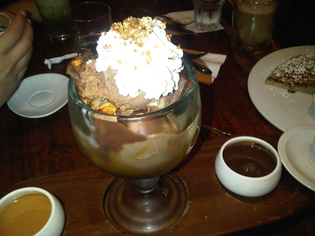 That sundae looks amazing. And my dream sundae would be pretty much that substituting cake batter ice cream for the dulce de leche ice cream with dark chocolate sauce. That thing is huge!