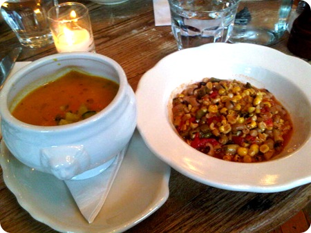 Apparently I was feeling particularly vegetarian-esque, so I went with their Gazpacho and Summer Succotash for my meal.