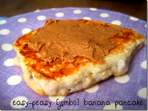 I don’t know what it was about this particular pancake (possibly the gluten-free flour?), but it had the consistency of an ooey-gooey piece of banana cake. Or something. Add some almond butter as “frosting,” and you are good to go, my friend.
