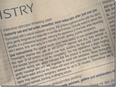 But, for the sake of giving a sound review of Artistry by Amway’s products, I decided to give their Intensive Skincare Renewing Peel a try yesterday (check out my review of their night creme here).