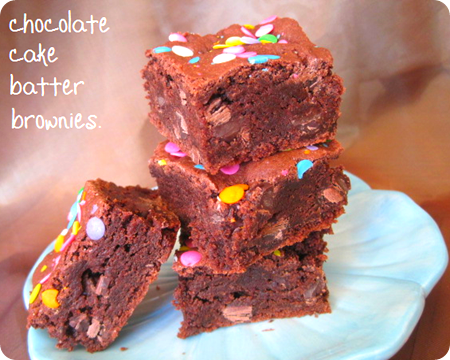 It was sort of by accident. We needed an extra dessert for our family Christmas party and had chocolate cake mix in the pantry but no frosting. I thought, I wonder if I could somehow maneuver this cake mix into brownies…