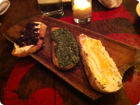 We started with three of their delicious crostinos: ricotta & orange honey, basil pesto, and radicchio & goat cheese.