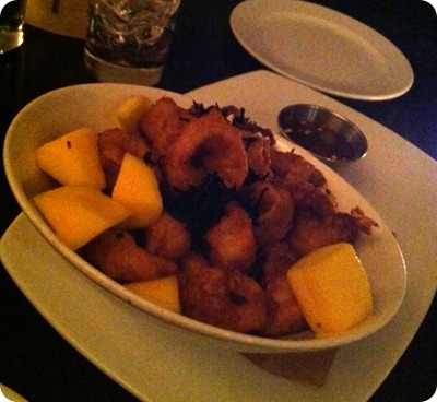 We started with Tempura Calamari (hijiki, fresh mango & white ponzu sauce).