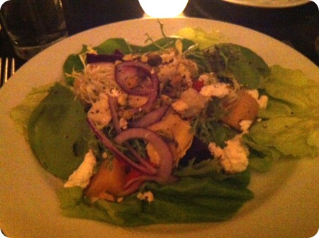 For an entrée I got the Eatery Winter Salad (bibb lettuce, frisse, red and golden beets, artichokes, peppers, coach farms goat cheese, pistachios and tarragon vinaigrette) + added avocado.