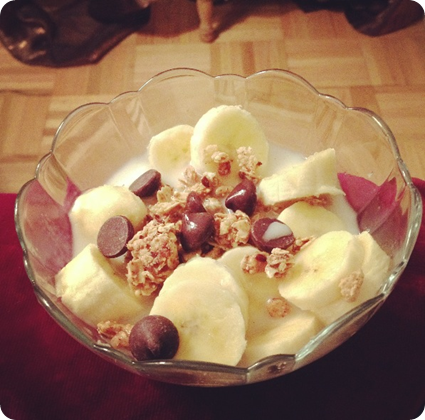 …and made a great addition to my “dessert” of granola + banana + dark chocolate chips.
