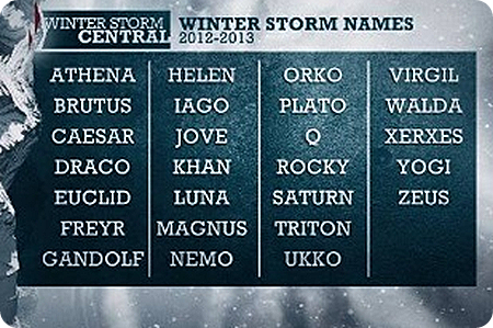 And apparently we now name snow storms. But not just any regular names…COOL names.