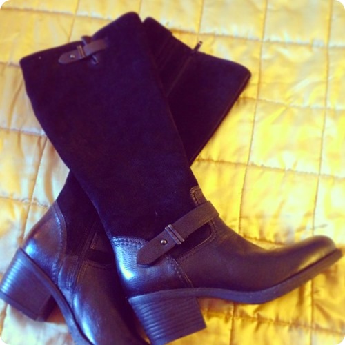 The Mojita Crush boots are also exactly what I was looking for to add to my shoe collection. I love tall riding boots, and these have the addition of a suede + leather mix, which is really trendy right now. The boots look great over leggings or tights, paired with a long sweater or sweater dress.