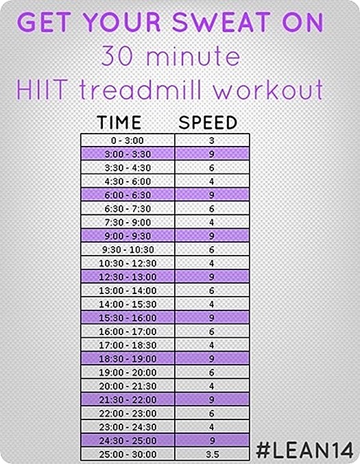 Here’s my go-to 30 minute “Get Your Sweat On” HIIT treadmill workout. You can do it on other machines as well, and feel free to take the speed up or down a notch depending on your level of fitness. Enjoy!
