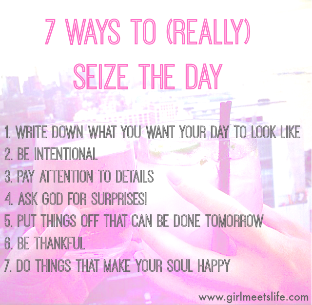 I think the reason so little of us actually try to seize the day is because we don’t really know how to (I know I’m guilty of it). It’s like, how am I supposed to make this day special when it’s like EVERY OTHER DAY of my life?