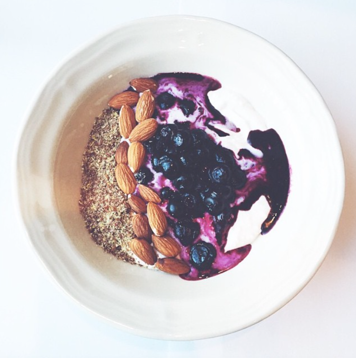 2) For something sweet - a combo of sliced banana, dates, almonds, coconut cream, and ground flax.