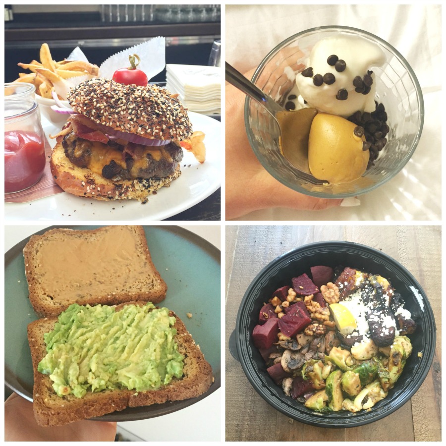 1) bacon cheeseburger from David Burke Kitchen (full disclosure - didn’t eat the bread. Ate about 10 fries). 2) Toasted Coconut Arctic Zero with chocolate chips and peanut butter. 3) Toast - I have toast of some sort just about every day. 4) Market veggie plate from Westville - roasted beets, fried plantains, roasted brussels sprouts, sautéed mushrooms.