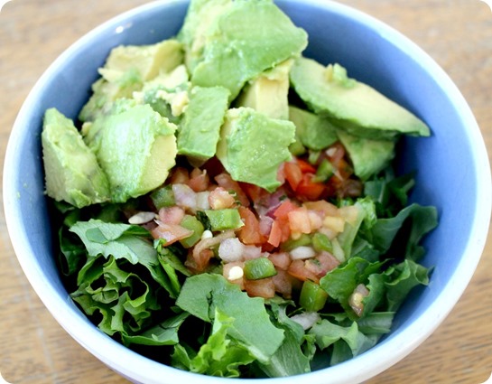 Don’t get me wrong – I love myself a nice big bowl of real pasta. But I also really love the taste and texture of spaghetti squash, so it’s a great healthy alternative…especially when smothered in avocado. So if you’re an avocado freak lover like me, you’ll definitely enjoy this too.