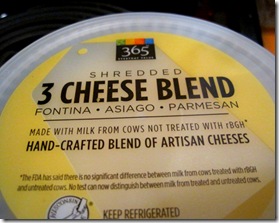 - 1 cup shredded three cheese blend (I used 365’s Fontina-Asiago-Parmesan)
