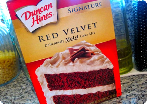 - 1 box red velvet cake mix