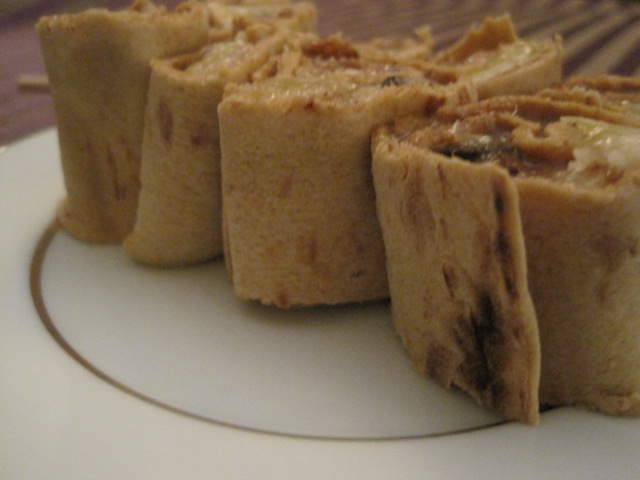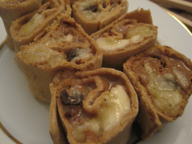 I will so be trying this dessert sushi. I love bananas (thank goodness, cause it’s about the only fruit I like) and chocolate chips. But I’ve never tried almond butter. I’m such a newbe to this stuff. Anyway, it looks delicious!
