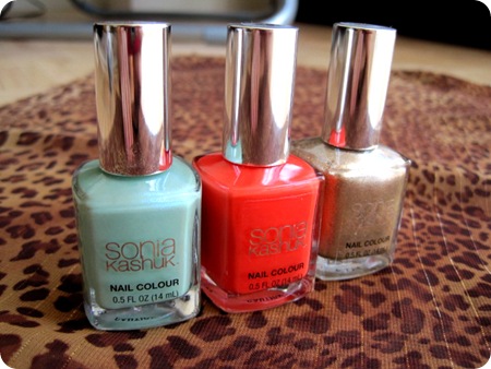 Target also sent me some other products from the Sonia Kashuk line: their Illuminating Bronzer, Satin Luxe Lip Color, and three shades of Nail Colour.