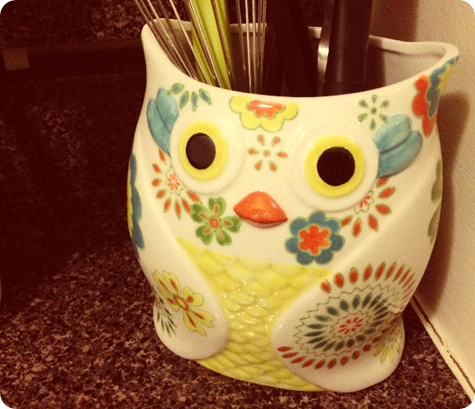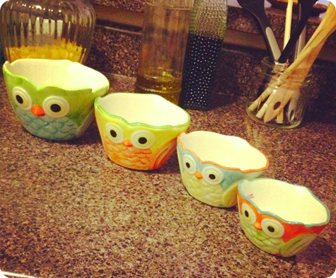 So cute, right?? All of those are gifts from my mom, who clearly understands my love for decorative yet useful kitchenware…and newfound love for owls. All of the above are from Pier 1 Imports (and on sale right now!).