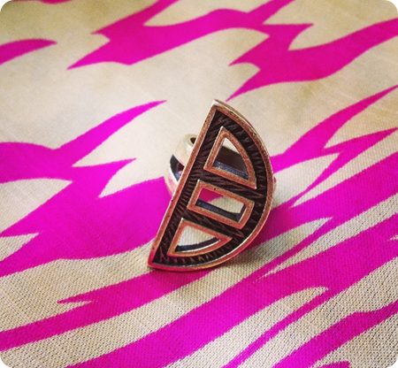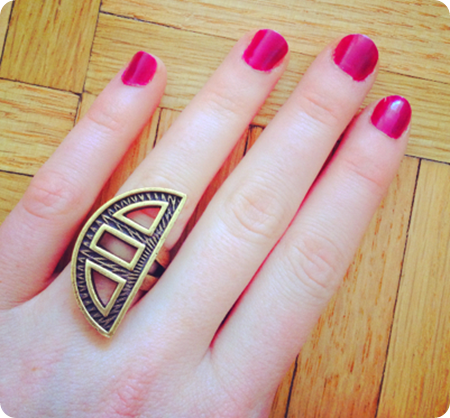 I’m obsessed with this ring! I’ve worn it out three times already and have gotten compliments every time. It’s a great statement piece - not to mention that it has that tribal vibe to it, which is very in style right now.