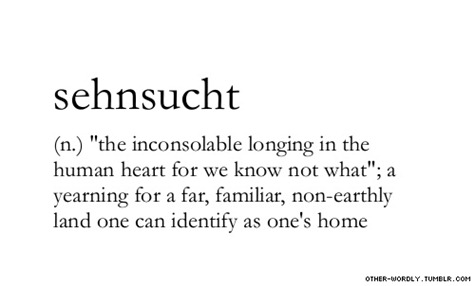 Sehnsucht. I like that a lot! It’s like that CS Lewis quote