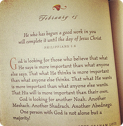 I read three daily devos every day – that reading is from “God’s Promises Day by Day.” I also read “Jesus Calling” by Sarah Young and “Cheque Book of the Bank of Faith” by Charles Spurgeon